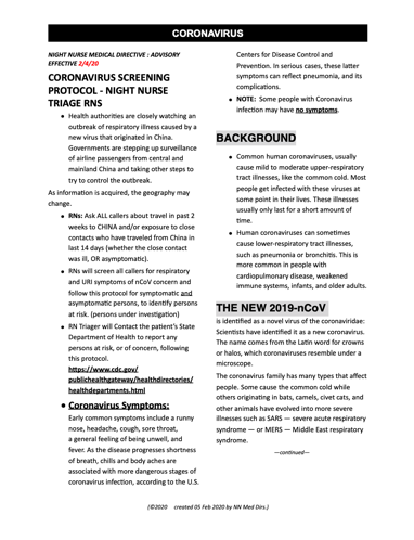 CORONAVIRUS PROTOCOL